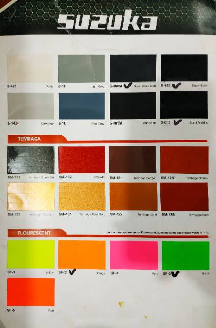 Ahmad yani no.317, katalog cat suzuka metalic, kode warna cat suzuka candytone, clear varnish suzuka, cat dasar suzuka, campuran clear cat duco otomotif suzuka pt rama distributor avian suzuka cat duco adalah produk cat yang berbasis lacquer dengan kelebihan cepat kering kilap.